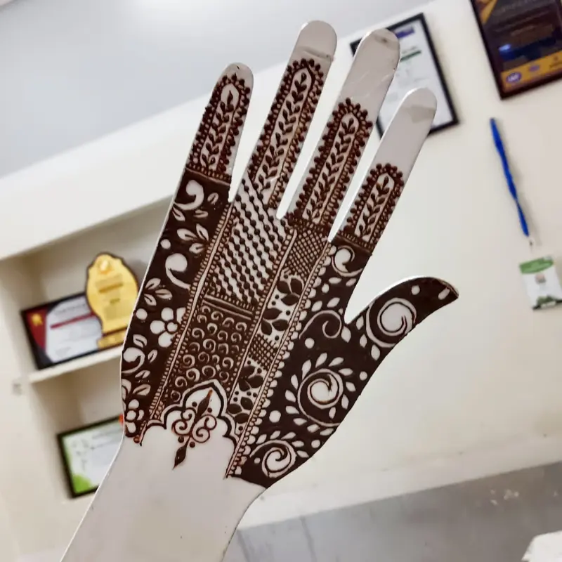 We design Arabic , traditional , khafif , and modern fusion styles. We ensure that each design is symmetrical, precise, detailed, and with a beautiful rich stain . Our aim is to make your most special day more memorable with your beautiful and meaningful henna .